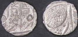 | Description / विवरण | Descrpn./Obv In the centre, a chhatra with Sa and Ta in Gurumukhi script on the left and right of its shaft; traces of the Persian legend seen on the obverse of the bigger Nanakshahi coins of Amritsar mint are also seen. Descrpn./Rev Big peepal leaf and traces of the Persian legend seen on the reverse of the bigger Nanakshahi coins of Amiritsar mint - Shri Amritsarjiv zarb [VS Year] Takht maimanat julus manus Akal Bakht. Especially traces of alif of Akal and te of Takht and maimanat are seen |