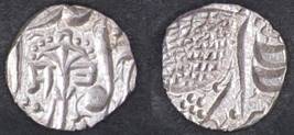 | Description / विवरण | Descrpn./Obv In the centre, a chhatra with Sa and Ta in Gurumukhi script on the left and right of its shaft; traces of the Persian legend seen on the obverse of the bigger Nanakshahi coins of Amritsar mint are also seen. Descrpn./Rev Big peepal leaf and traces of the Persian legend seen on the reverse of the bigger Nanakshahi coins of Amiritsar mint - Shri Amritsarjiv zarb [VS Year] Takht maimanat julus manus Akal Bakht. Especially traces of alif of Akal and te of Takht and maimanat are seen |
