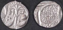 | Description / विवरण | Descrpn./Obv In the centre, a chhatra with Sa and Ta in Gurumukhi script on the left and right of its shaft; traces of the Persian legend seen on the obverse of the bigger Nanakshahi coins of Amritsar mint are also seen. Descrpn./Rev Big peepal leaf and traces of the Persian legend seen on the reverse of the bigger Nanakshahi coins of Amiritsar mint - Shri Amritsarjiv zarb [VS Year] Takht maimanat julus manus Akal Bakht. Especially traces of alif of Akal and te of Takht and maimanat are seen |