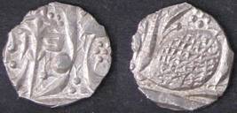 | Description / विवरण | Descrpn./Obv In the centre, a chhatra with Sa and Ta in Gurumukhi script on the left and right of its shaft; traces of the Persian legend seen on the obverse of the bigger Nanakshahi coins of Amritsar mint are also seen. Descrpn./Rev Big peepal leaf and traces of the Persian legend seen on the reverse of the bigger Nanakshahi coins of Amiritsar mint - Shri Amritsarjiv zarb [VS Year] Takht maimanat julus manus Akal Bakht. Especially traces of alif of Akal and te of Takht and maimanat are seen |