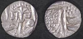 | Description / विवरण | Descrpn./Obv In the centre, a chhatra with Sa and Ta in Gurumukhi script on the left and right of its shaft; traces of the Persian legend seen on the obverse of the bigger Nanakshahi coins of Amritsar mint are also seen. Descrpn./Rev Big peepal leaf and traces of the Persian legend seen on the reverse of the bigger Nanakshahi coins of Amiritsar mint - Shri Amritsarjiv zarb [VS Year] Takht maimanat julus manus Akal Bakht. Especially traces of alif of Akal and te of Takht and maimanat are seen |