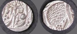 | Description / विवरण | Descrpn./Obv In the centre, a chhatra with Sa and Ta in Gurumukhi script on the left and right of its shaft; traces of the Persian legend seen on the obverse of the bigger Nanakshahi coins of Amritsar mint are also seen. Descrpn./Rev Big peepal leaf and traces of the Persian legend seen on the reverse of the bigger Nanakshahi coins of Amiritsar mint - Shri Amritsarjiv zarb [VS Year] Takht maimanat julus manus Akal Bakht. Especially traces of alif of Akal and te of Takht and maimanat are seen |