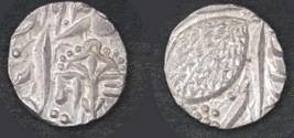 | Description / विवरण | Descrpn./Obv In the centre, a chhatra with Sa and Ta in Gurumukhi script on the left and right of its shaft; traces of the Persian legend seen on the obverse of the bigger Nanakshahi coins of Amritsar mint are also seen. Descrpn./Rev Big peepal leaf and traces of the Persian legend seen on the reverse of the bigger Nanakshahi coins of Amiritsar mint - Shri Amritsarjiv zarb [VS Year] Takht maimanat julus manus Akal Bakht. Especially traces of alif of Akal and te of Takht and maimanat are seen |