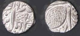 | Description / विवरण | Descrpn./Obv In the centre, a chhatra with Sa and Ta in Gurumukhi script on the left and right of its shaft; traces of the Persian legend seen on the obverse of the bigger Nanakshahi coins of Amritsar mint are also seen. Descrpn./Rev Big peepal leaf and traces of the Persian legend seen on the reverse of the bigger Nanakshahi coins of Amiritsar mint - Shri Amritsarjiv zarb [VS Year] Takht maimanat julus manus Akal Bakht. Especially traces of alif of Akal and te of Takht and maimanat are seen |