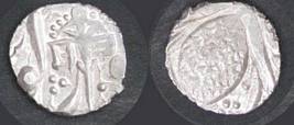 | Description / विवरण | Descrpn./Obv In the centre, a chhatra with Sa and Ta in Gurumukhi script on the left and right of its shaft; traces of the Persian legend seen on the obverse of the bigger Nanakshahi coins of Amritsar mint are also seen. Descrpn./Rev Big peepal leaf and traces of the Persian legend seen on the reverse of the bigger Nanakshahi coins of Amiritsar mint - Shri Amritsarjiv zarb [VS Year] Takht maimanat julus manus Akal Bakht. Especially traces of alif of Akal and te of Takht and maimanat are seen |