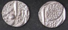 | Description / विवरण | Descrpn./Obv In the centre, a chhatra with Sa and Ta in Gurumukhi script on the left and right of its shaft; traces of the Persian legend seen on the obverse of the bigger Nanakshahi coins of Amritsar mint are also seen. Descrpn./Rev Big peepal leaf and traces of the Persian legend seen on the reverse of the bigger Nanakshahi coins of Amiritsar mint - Shri Amritsarjiv zarb [VS Year] Takht maimanat julus manus Akal Bakht. Especially traces of alif of Akal and te of Takht and maimanat are seen |