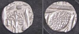 | Description / विवरण | Descrpn./Obv In the centre, a chhatra with Sa and Ta in Gurumukhi script on the left and right of its shaft; traces of the Persian legend seen on the obverse of the bigger Nanakshahi coins of Amritsar mint are also seen. Descrpn./Rev Big peepal leaf and traces of the Persian legend seen on the reverse of the bigger Nanakshahi coins of Amiritsar mint - Shri Amritsarjiv zarb [VS Year] Takht maimanat julus manus Akal Bakht. Especially traces of alif of Akal and te of Takht and maimanat are seen |