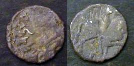 | Description / विवरण | Descrpn./Obv Recumbent bull facing left, wearing jhula (saddle cloth), with trisula (trident) symbol on rump. Above, legend in Sarada script Sri Samantadeva . Descrpn./Rev Rider with lance on caparisoned horse facing right. On left, Sarada letter bhi and on right, Sarada letter ta |