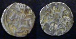 | Description / विवरण | Descrpn./Obv Recumbent bull facing left, wearing jhula (saddle cloth), with trisula (trident) symbol on rump. Above, legend in Sarada script Sri Samantadeva . Descrpn./Rev Rider with lance on caparisoned horse facing right. On left, Sarada letter bhi and on right, Sarada letter ta |
