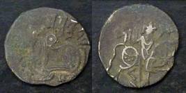 | Description / विवरण | Descrpn./Obv Recumbent bull facing left, wearing jhula (saddle cloth), with trisula (trident) symbol on rump. Above, legend in Sarada script Sri Samantadeva . Descrpn./Rev Rider with lance on caparisoned horse facing right. On left, Sarada letter bhi and on right, Sarada letter ta |