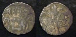 | Description / विवरण | Descrpn./Obv Recumbent bull facing left, wearing jhula (saddle cloth), with trisula (trident) symbol on rump. Above, legend in Sarada script Sri Samantadeva . Descrpn./Rev Rider with lance on caparisoned horse facing right. On left, Sarada letter bhi and on right, Sarada letter ta |