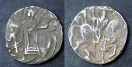 | Description / विवरण | Descrpn./Obv Recumbent bull facing left, wearing jhula (saddle cloth), with trisula (trident) symbol on rump. Above, legend in Sarada script Sri Samantadeva . Descrpn./Rev Rider with lance on caparisoned horse facing right. On left, Sarada letter bhi and on right, Sarada letter ta |