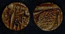 | Description / विवरण | Descrpn./Obv In the centre, a chhatra with Sa and Ta in Gurumukhi script on the left and right of its shaft; traces of the Persian legend seen on the obverse of the bigger Nanakshahi coins of Amritsar mint are also seen. Descrpn./Rev Big peepal leaf and traces of the Persian legend seen on the reverse of the bigger Nanakshahi coins of Amiritsar mint - Shri Amritsarjiv zarb [VS Year] Takht maimanat julus manus Akal Bakht. Especially traces of alif of Akal and te of Takht and maimanat are seen |