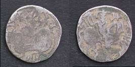 | Description / विवरण | Descrpn./Obv Recumbent bull facing left, wearing jhula (saddle cloth), with trisula (trident) symbol on rump. Above, legend in Sarada script Sri Samantadeva . Descrpn./Rev Rider with lance on caparisoned horse facing right. On left, Sarada letter bhi and on right, Sarada letter ta |