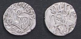 | Description / विवरण | Descrpn./Obv Recumbent bull facing left, wearing jhula (saddle cloth), with trisula (trident) symbol on rump. Above, legend in Sarada script Sri Samantadeva . Descrpn./Rev Rider with lance on caparisoned horse facing right. On left, Sarada letter bhi and on right, Sarada letter ta |