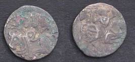 | Description / विवरण | Descrpn./Obv Recumbent bull facing left, wearing jhula (saddle cloth), with trisula (trident) symbol on rump. Above, legend in Sarada script Sri Samantadeva . Descrpn./Rev Rider with lance on caparisoned horse facing right. On left, Sarada letter bhi and on right, Sarada letter ta |