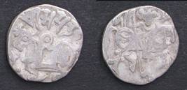 | Description / विवरण | Descrpn./Obv Recumbent bull facing left, wearing jhula (saddle cloth), with trisula (trident) symbol on rump. Above, legend in Sarada script Sri Samantadeva . Descrpn./Rev Rider with lance on caparisoned horse facing right. On left, Sarada letter bhi and on right, Sarada letter ta |