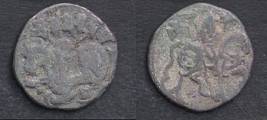 | Description / विवरण | Descrpn./Obv Recumbent bull facing left, wearing jhula (saddle cloth), with trisula (trident) symbol on rump. Above, legend in Sarada script Sri Samantadeva . Descrpn./Rev Rider with lance on caparisoned horse facing right. On left, Sarada letter bhi and on right, Sarada letter ta |