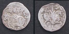 | Description / विवरण | Descrpn./Obv Recumbent bull facing left, wearing jhula (saddle cloth), with trisula (trident) symbol on rump. Above, legend in Sarada script Sri Samantadeva . Descrpn./Rev Rider with lance on caparisoned horse facing right. On left, Sarada letter bhi and on right, Sarada letter ta |