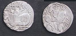 | Description / विवरण | Descrpn./Obv Recumbent bull facing left, wearing jhula (saddle cloth), with trisula (trident) symbol on rump. Above, legend in Sarada script Sri Samantadeva . Descrpn./Rev Rider with lance on caparisoned horse facing right. On left, Sarada letter bhi and on right, Sarada letter ta |