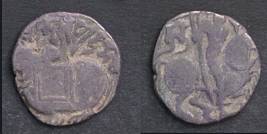 | Description / विवरण | Descrpn./Obv Recumbent bull facing left, wearing jhula (saddle cloth), with trisula (trident) symbol on rump. Above, legend in Sarada script Sri Samantadeva . Descrpn./Rev Rider with lance on caparisoned horse facing right. On left, Sarada letter bhi and on right, Sarada letter ta |