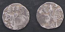 | Description / विवरण | Descrpn./Obv Recumbent bull facing left, wearing jhula (saddle cloth), with trisula (trident) symbol on rump. Above, legend in Sarada script Sri Samantadeva . Descrpn./Rev Rider with lance on caparisoned horse facing right. On left, Sarada letter bhi and on right, Sarada letter ta |
