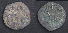 | Description / विवरण | Descrpn./Obv Recumbent bull facing left, wearing jhula (saddle cloth), with trisula (trident) symbol on rump. Above, legend in Sarada script Sri Samantadeva . Descrpn./Rev Rider with lance on caparisoned horse facing right. On left, Sarada letter bhi and on right, Sarada letter ta |