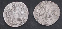 | Description / विवरण | Descrpn./Obv Recumbent bull facing left, wearing jhula (saddle cloth), with trisula (trident) symbol on rump. Above, legend in Sarada script Sri Samantadeva . Descrpn./Rev Rider with lance on caparisoned horse facing right. On left, Sarada letter bhi and on right, Sarada letter ta |