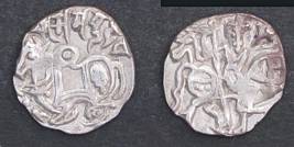 | Description / विवरण | Descrpn./Obv Recumbent bull facing left, wearing jhula (saddle cloth), with trisula (trident) symbol on rump. Above, legend in Sarada script Sri Samantadeva . Descrpn./Rev Rider with lance on caparisoned horse facing right. On left, Sarada letter bhi and on right, Sarada letter ta |