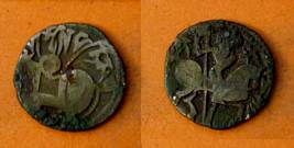 | Description / विवरण | Descrpn./Obv Recumbent bull facing left, wearing jhula (saddle cloth), with trisula (trident) symbol on rump. Above, legend in Sarada script Sri Samantadeva . Descrpn./Rev Rider with lance on caparisoned horse facing right. On left, Sarada letter bhi and on right, Sarada letter ta |