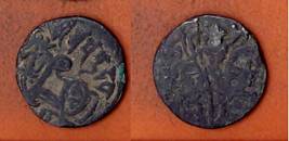 | Description / विवरण | Descrpn./Obv Recumbent bull facing left, wearing jhula (saddle cloth), with trisula (trident) symbol on rump. Above, legend in Sarada script Sri Samantadeva . Descrpn./Rev Rider with lance on caparisoned horse facing right. On left, Sarada letter bhi and on right, Sarada letter ta |
