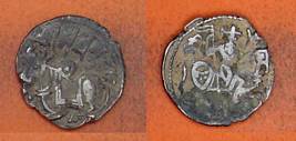 | Description / विवरण | Descrpn./Obv Recumbent bull facing left, wearing jhula (saddle cloth), with trisula (trident) symbol on rump. Above, legend in Sarada script Sri Samantadeva . Descrpn./Rev Rider with lance on caparisoned horse facing right. On left, Sarada letter bhi and on right, Sarada letter ta |