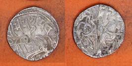 | Description / विवरण | Descrpn./Obv Recumbent bull facing left, wearing jhula (saddle cloth), with trisula (trident) symbol on rump. Above, legend in Sarada script Sri Samantadeva . Descrpn./Rev Rider with lance on caparisoned horse facing right. On left, Sarada letter bhi and on right, Sarada letter ta |