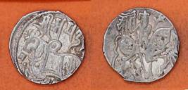 | Description / विवरण | Descrpn./Obv Recumbent bull facing left, wearing jhula (saddle cloth), with trisula (trident) symbol on rump. Above, legend in Sarada script Sri Samantadeva . Descrpn./Rev Rider with lance on caparisoned horse facing right. On left, Sarada letter bhi and on right, Sarada letter ta |