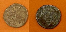 | Description / विवरण | Descrpn./Obv Recumbent bull facing left, wearing jhula (saddle cloth), with trisula (trident) symbol on rump. Above, legend in Sarada script Sri Samantadeva . Descrpn./Rev Rider with lance on caparisoned horse facing right. On left, Sarada letter bhi and on right, Sarada letter ta |