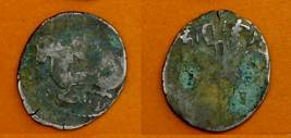 | Description / विवरण | Descrpn./Obv Recumbent bull facing left, wearing jhula (saddle cloth), with trisula (trident) symbol on rump. Above, legend in Sarada script Sri Samantadeva . Descrpn./Rev Rider with lance on caparisoned horse facing right. On left, Sarada letter bhi and on right, Sarada letter ta |