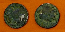 | Description / विवरण | Descrpn./Obv Recumbent bull facing left, wearing jhula (saddle cloth), with trisula (trident) symbol on rump. Above, legend in Sarada script Sri Samantadeva . Descrpn./Rev Rider with lance on caparisoned horse facing right. On left, Sarada letter bhi and on right, Sarada letter ta |
