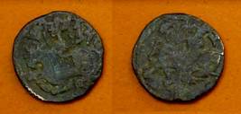 | Description / विवरण | Descrpn./Obv Recumbent bull facing left, wearing jhula (saddle cloth), with trisula (trident) symbol on rump. Above, legend in Sarada script Sri Samantadeva . Descrpn./Rev Rider with lance on caparisoned horse facing right. On left, Sarada letter bhi and on right, Sarada letter ta |