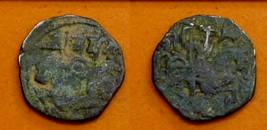 | Description / विवरण | Descrpn./Obv Recumbent bull facing left, wearing jhula (saddle cloth), with trisula (trident) symbol on rump. Above, legend in Sarada script Sri Samantadeva . Descrpn./Rev Rider with lance on caparisoned horse facing right. On left, Sarada letter bhi and on right, Sarada letter ta |