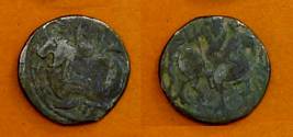 | Description / विवरण | Descrpn./Obv Recumbent bull facing left, wearing jhula (saddle cloth), with trisula (trident) symbol on rump. Above, legend in Sarada script Sri Samantadeva . Descrpn./Rev Rider with lance on caparisoned horse facing right. On left, Sarada letter bhi and on right, Sarada letter ta |