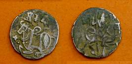 | Description / विवरण | Descrpn./Obv Recumbent bull facing left, wearing jhula (saddle cloth), with trisula (trident) symbol on rump. Above, legend in Sarada script Sri Samantadeva . Descrpn./Rev Rider with lance on caparisoned horse facing right. On left, Sarada letter bhi and on right, Sarada letter ta |