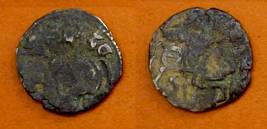 | Description / विवरण | Descrpn./Obv Recumbent bull facing left, wearing jhula (saddle cloth), with trisula (trident) symbol on rump. Above, legend in Sarada script Sri Samantadeva . Descrpn./Rev Rider with lance on caparisoned horse facing right. On left, Sarada letter bhi and on right, Sarada letter ta |