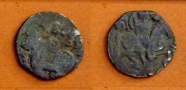 | Description / विवरण | Descrpn./Obv Recumbent bull facing left, wearing jhula (saddle cloth), with trisula (trident) symbol on rump. Above, legend in Sarada script Sri Samantadeva . Descrpn./Rev Rider with lance on caparisoned horse facing right. On left, Sarada letter bhi and on right, Sarada letter ta |