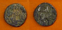 | Description / विवरण | Descrpn./Obv Recumbent bull facing left, wearing jhula (saddle cloth), with trisula (trident) symbol on rump. Above, legend in Sarada script Sri Samantadeva . Descrpn./Rev Rider with lance on caparisoned horse facing right. On left, Sarada letter bhi and on right, Sarada letter ta |