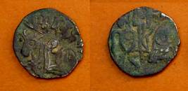 | Description / विवरण | Descrpn./Obv Recumbent bull facing left, wearing jhula (saddle cloth), with trisula (trident) symbol on rump. Above, legend in Sarada script Sri Samantadeva . Descrpn./Rev Rider with lance on caparisoned horse facing right. On left, Sarada letter bhi and on right, Sarada letter ta |