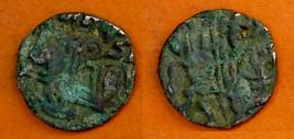 | Description / विवरण | Descrpn./Obv Recumbent bull facing left, wearing jhula (saddle cloth), with trisula (trident) symbol on rump. Above, legend in Sarada script Sri Samantadeva . Descrpn./Rev Rider with lance on caparisoned horse facing right. On left, Sarada letter bhi and on right, Sarada letter ta |