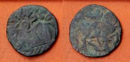 | Description / विवरण | Descrpn./Obv Recumbent bull facing left, wearing jhula (saddle cloth), with trisula (trident) symbol on rump. Above, legend in Sarada script Sri Samantadeva . Descrpn./Rev Rider with lance on caparisoned horse facing right. On left, Sarada letter bhi and on right, Sarada letter ta |