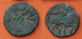 | Description / विवरण | Descrpn./Obv Recumbent bull facing left, wearing jhula (saddle cloth), with trisula (trident) symbol on rump. Above, legend in Sarada script Sri Samantadeva . Descrpn./Rev Rider with lance on caparisoned horse facing right. On left, Sarada letter bhi and on right, Sarada letter ta |
