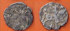 | Description / विवरण | Descrpn./Obv Recumbent bull facing left, wearing jhula (saddle cloth), with trisula (trident) symbol on rump. Above, legend in Sarada script Sri Samantadeva . Descrpn./Rev Rider with lance on caparisoned horse facing right. On left, Sarada letter bhi and on right, Sarada letter ta |
