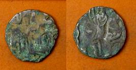 | Description / विवरण | Descrpn./Obv Recumbent bull facing left, wearing jhula (saddle cloth), with trisula (trident) symbol on rump. Above, legend in Sarada script Sri Samantadeva . Descrpn./Rev Rider with lance on caparisoned horse facing right. On left, Sarada letter bhi and on right, Sarada letter ta |